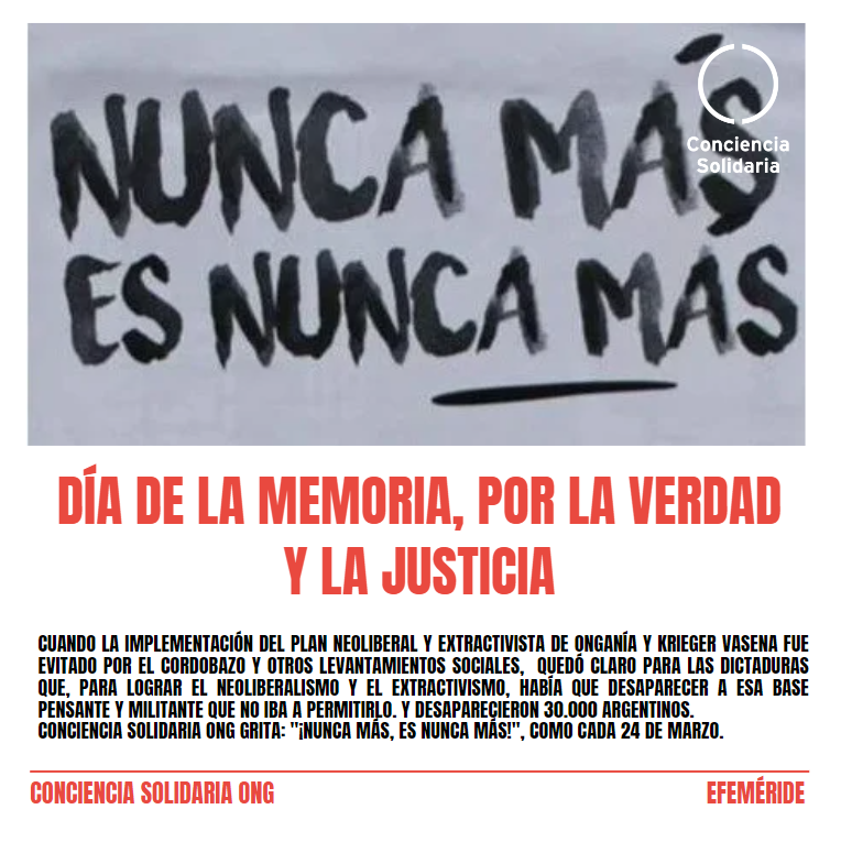 El 24M es el Día de la Memoria, por la Verdad y la Justicia… Memoria, para que los crímenes del pasado no sean olvidados ni repetidos. Verdad, para que en nuestro presente, podamos lograr la Justicia, que nos permita un futuro Mejor.