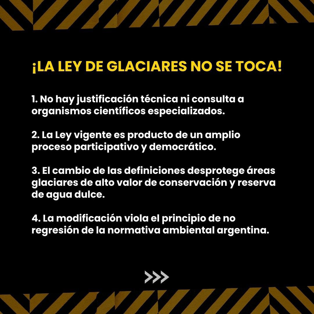 El intento de modificar regresivamente la Ley de Glaciares es un claro ataque a la protección ambiental y a los bienes naturales estratégicos de nuestro país. La Ley de Glaciares es una pieza fundamental de legislación ambiental que busca preservar uno de los ecosistemas fundamentales para la vida y trabajo de nuestra población. Este ataque es inaceptable y evidencia la influencia desproporcionada que las grandes corporaciones mineras tienen sobre nuestra democracia, específicamente sobre los gobiernos provinciales y el Congreso Nacional. Estas modificaciones regresivas buscan autorizar la actividad minera en zonas actualmente protegidas, donde se encuentran glaciares y ambiente periglaciar, permitiendo su destrucción, perjudicando gravemente el equilibrio ecológico y la calidad de vida de las comunidades que dependen de estos ecosistemas.